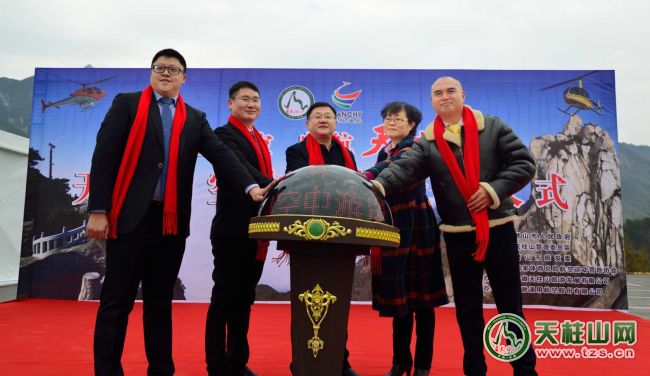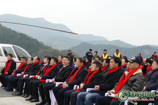 2019年1月25日上午,“空中看天柱”天柱山低空飛行旅游開航儀式在茶莊P1停車場(漢馳航空飛行基地)舉辦。儀式由潛山市人民政府、天柱山管理委員會、潛山市旅發(fā)委和國家體育總局航空運(yùn)動營地指導(dǎo),安徽天柱山旅游發(fā)展有限公司主辦,漢弛通用航空股份有限公司承辦。潛山市委常委、天柱山管委會主任涂高生,潛山人民政府副市長蔡婷婷,國家體育總局航空運(yùn)動營地標(biāo)準(zhǔn)修訂專家委會委員何馳,漢馳通用航空股份有限公司董事長涂楓,漢馳通用航空航空俱東部總經(jīng)理查雄風(fēng)等嘉賓共同啟動開航儀式。市文化委、市旅發(fā)委、招商局、天柱山鎮(zhèn)、天管會等單位領(lǐng)導(dǎo)和主要負(fù)責(zé)人;項(xiàng)目建設(shè)合作運(yùn)營機(jī)構(gòu)、新聞媒體記者和現(xiàn)場旅客等近200人共同參與開航儀式和首航試飛活動。
