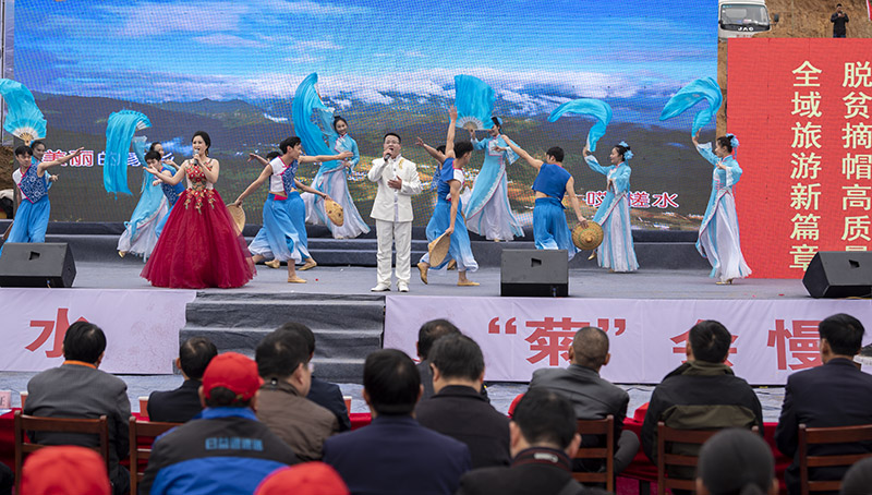 ? ? 開幕式由中共槎水鎮(zhèn)委員會(huì)、槎水鎮(zhèn)人民政府,潛山市文化委、市市監(jiān)局、市扶貧辦、市旅發(fā)委主辦。《又是一年菊花香》、《美麗槎水 我的故鄉(xiāng)》、《雛菊花》、《 物華天寶 》等歌、舞、情景劇充分展現(xiàn)槎水鄉(xiāng)村生活風(fēng)情、自然與文化魅力、山區(qū)群眾奮斗在新時(shí)代以及經(jīng)濟(jì)發(fā)展成就。一個(gè)又一個(gè)接地氣的節(jié)目,讓觀眾們看了十分過癮,掌聲不斷。