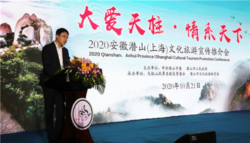 人民網(wǎng)上海10月21日電? ?今天上午,由中共潛山市委、潛山市人民政府主辦的“大愛天柱 情系天下” 2020安徽潛山(上海)文化旅游宣傳推介會在上海浦東新區(qū)舉行。潛山市委書記張勁松、上海市文化和旅游局宣傳推廣處處長陳平致辭,市委副書記、市長梅耐雪推介潛山全域旅游,市委常委、天柱山風(fēng)景區(qū)管委會副主任涂高生推介天柱山旅游,景域驢媽媽集團(tuán)董事長、上海市安徽商會會長洪清華講話。市領(lǐng)導(dǎo)黃銀枝、郭玉晟、陳茜、余永燦、邵偉民、汪世平、林斗喜、蔡婷婷、程赟、趙偉出席推介會。