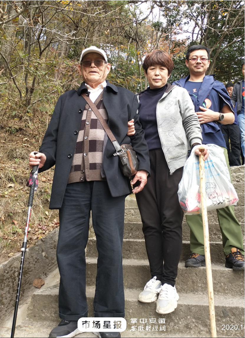 “歲歲重陽,今又重陽,登高望遠,父母安康?!眮碜阅暇┑牧峙颗阒细赣H登山,不停地為老父親拍照,其樂融融。