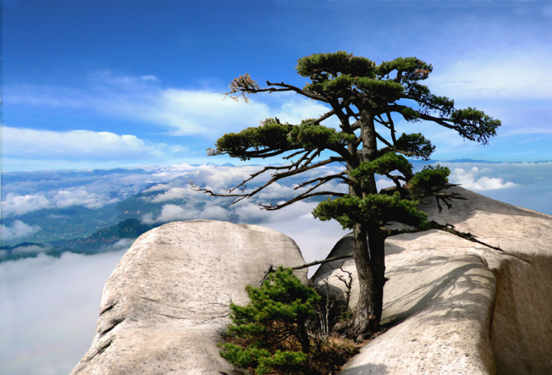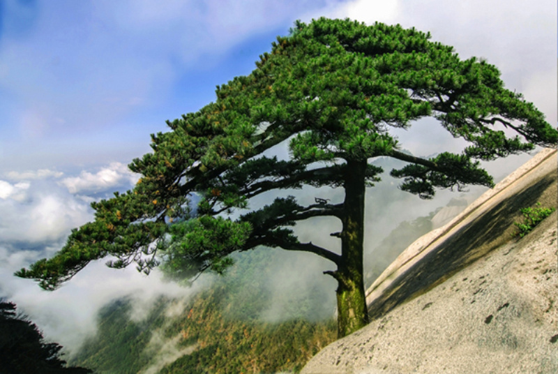 登天柱,滿目皆松。在安徽潛山市天柱山上,千年古松不下萬株,千姿百態(tài)。其中尤以群松之首的天柱松最為出名。天柱松與日月為伴,風雨為友,據(jù)了解,已有1000多歲。