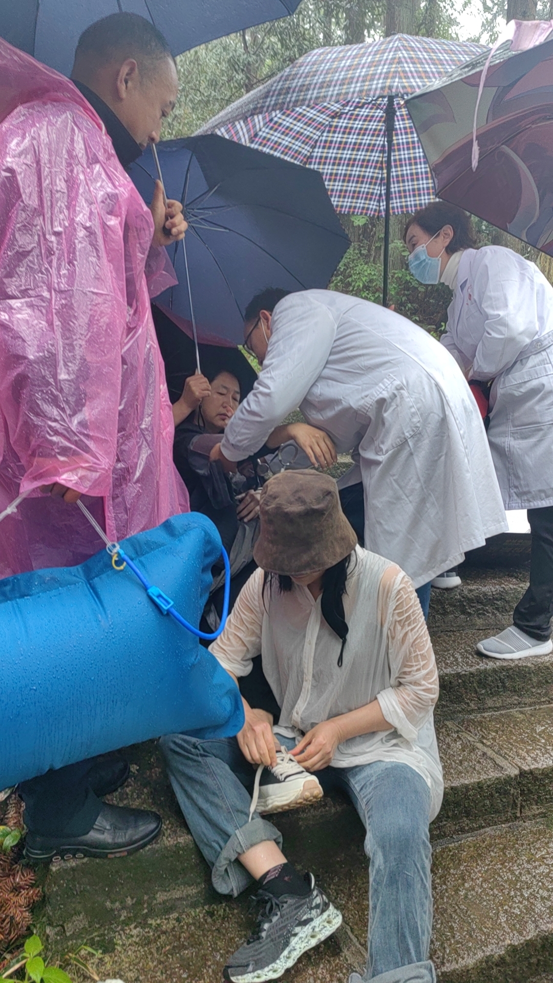 此時此刻,一場與時間賽跑的急速救援的暖心一幕,在天柱山景區(qū)真實上演。到達(dá)救援現(xiàn)場,游客高女士呈現(xiàn)心慌、四肢無力、全身發(fā)抖、不能言語、時有惡心等狀態(tài),醫(yī)生給游客認(rèn)真仔細(xì)地做了檢查,表示情況十分危急,需及時到山下醫(yī)院就診。劉星第一時間撥通120急救電話,隊員汪小曲冒雨把高女士從迎真峰背負(fù)至牧羊河索道上站,路程約四五百米,然后坐索道下山并將游客抬上救護(hù)車,送往潛山市中醫(yī)院就診,稍微歇停背負(fù)的汪小曲,已累得癱軟一旁,站立不穩(wěn)。