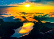 特色: 當清晨的第一縷陽光灑向大地時,安徽天柱山便成了大自然的調色板,云朵像棉花一樣蓬松柔軟,彩霞似火焰一般激情熱烈。被金黃色或橙紅色包裹的奇峰怪石,尤顯壯麗、神秘,給予人美好與震撼,是攝影、繪畫、寫作的好場景,也是旅行、探險、戶外活動的好去處。(圖/張永富 文/章媛媛)